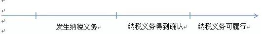 第二,实施条例第31条确实使用“发生”作为衡量税金能否扣除的标准。但是这里所指的“发生税金”的时点是否等同于其他税法“发生纳税义务”的时点是有疑问的。一项完整的纳税义务从发生到履行完毕经过3个阶段:1.发生纳税义务的阶段;2.纳税义务得到税务机关确认的阶段;3.纳税义务达到可履行状态的阶段(见下图):